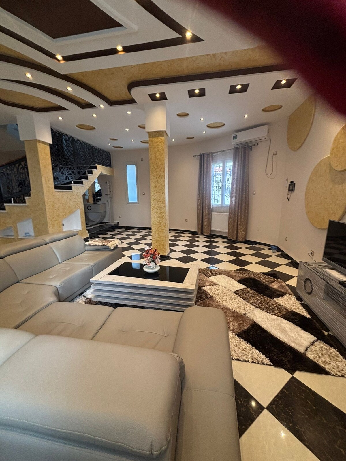 Þetta fjölskylduhúsnæði (1. hæð) er nálægt öllum stöðum og þægindum. Staðsett í miðborginni í gamalli franskri byggingu, öruggri, nálægt Cirta-safninu og í 10 mínútna fjarlægð frá flugvellinum. Staðsetningin auðveldar þér að heimsækja borgina fótgangandi Með miðstöðvarhitun eru 3 loftræstikerfi sem hægt er að aðlagast loftslaginu á staðnum Fyrir allar bókanir fólks af mismunandi kyni verður að réttlæta sambandið með fjölskyldubæklingi eða kennivottorði í samræmi við alsírsk lög