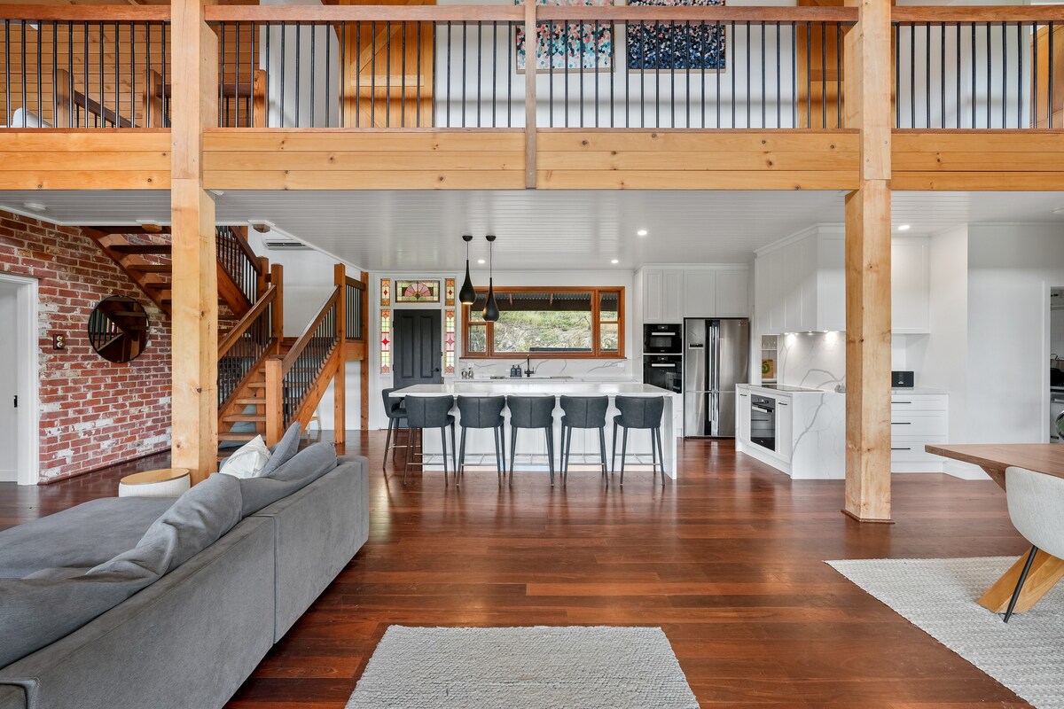 Þessi 54 hektara búfjárrekstur er uppi á 512 metra hæð með vestri hlið sem fangar glæsilegt sólarlag yfir Adelaide-hæðunum. Bóndabærinn sem er innblásinn af hlöðunni innifelur 2 hæðir, 4 svefnherbergi, 2,5 baðherbergi og fjölmiðlaherbergi sem gerir þér kleift að taka á móti 10 gestum á þægilegan hátt. Rúmgóð setustofa skemmtikrafta með billjardborði og eldstæði ásamt opnu eldhúsi sem rennur út á grillaðstöðu utandyra, setustofur, borðstofuborð og afgirt sundlaug.