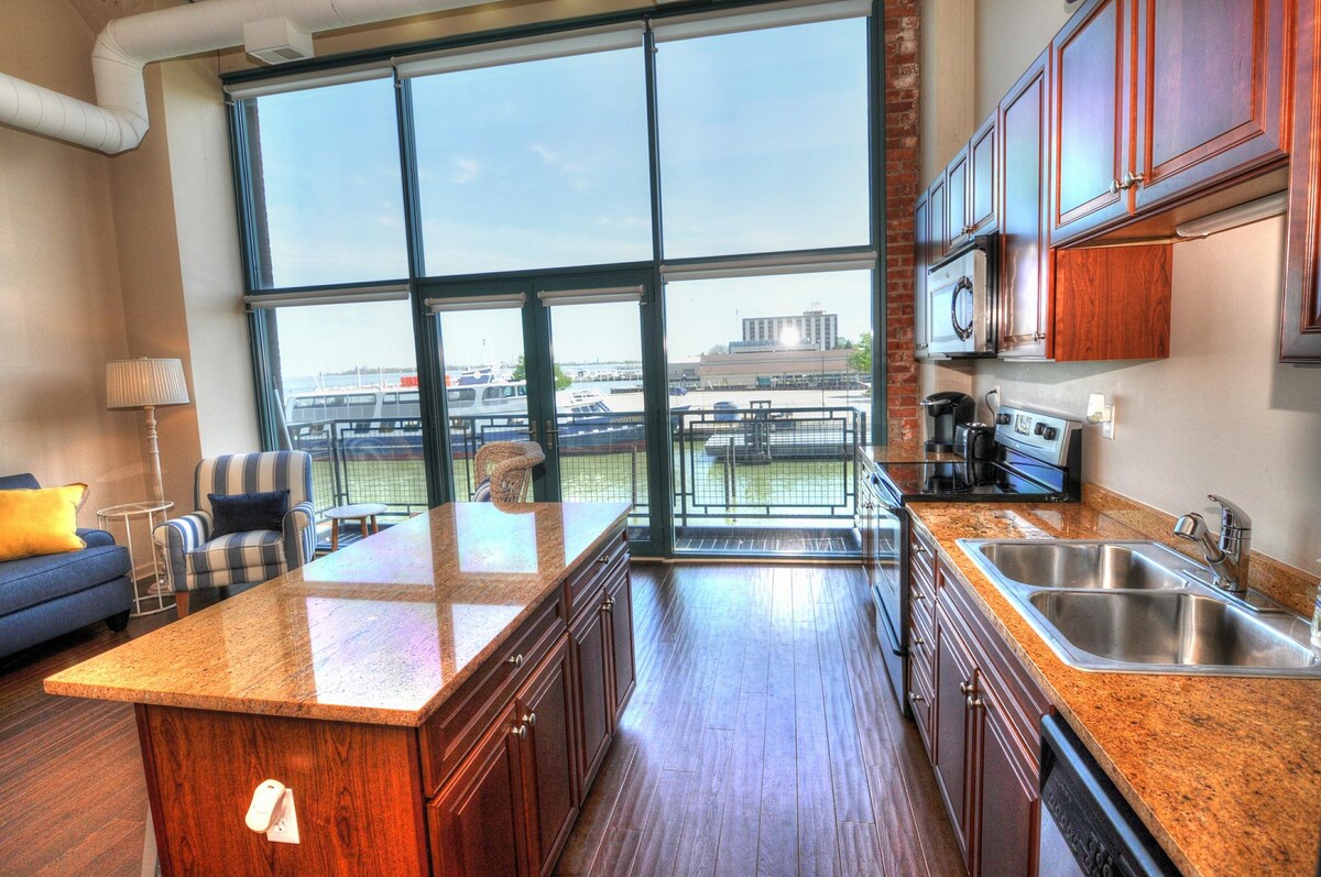 Escape to this beautiful Sandusky Bay oasis with a stunning view of the Jackson Street Pier!! Outfitted for four guests in the heart of Sandusky this beautiful condo has a fresh, botanical feel that lends itself perfectly to the natural oasis of the Sandusky Bay found just outside your window. Whether you prefer to sip your coffee while watching the hustle and bustle of the Jackson Street Pier, or you want to linger over a glass of wine and the sunset, this is the vacation destination for you!