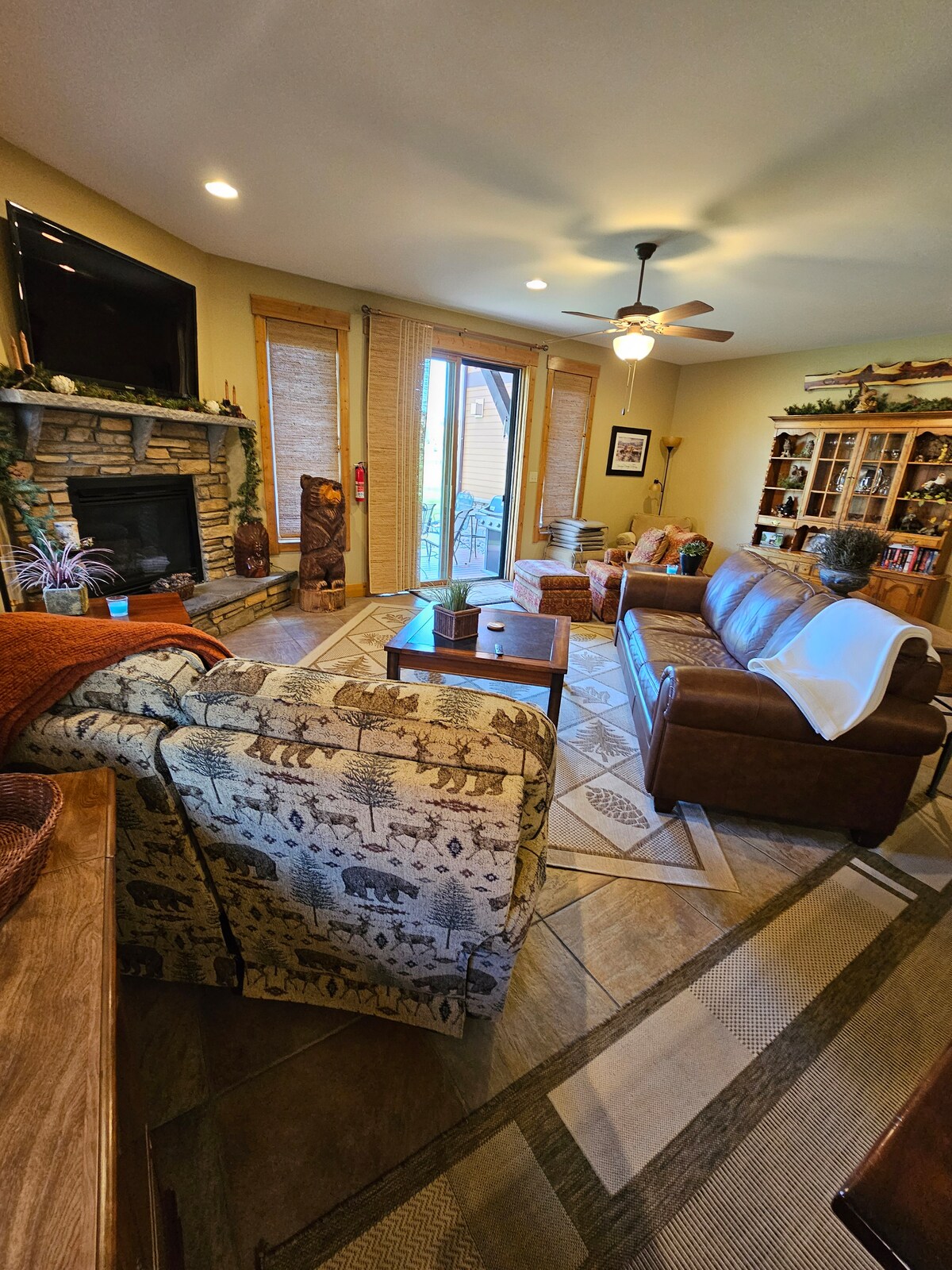 Verið velkomin í fjallaævintýri Þetta þriggja svefnherbergja heimili er lúxus fyrir alla fjölskylduna, meira að segja pelsabörnin. Rúmgóð stofa með flatskjá t.v og rafgasarinn. Opið útsýni yfir Tee Box 3 á Rio Grande golfvellinum frá veröndinni í bakgarðinum. Fullbúið eldhús, hjónaherbergi með setusvæði, arni, flatskjá t.v og útsýni af svölum. Á aðalbaðherberginu er standur í sturtu með vaskinum hans og hennar. Annað fullbúið gestabaðherbergi uppi.