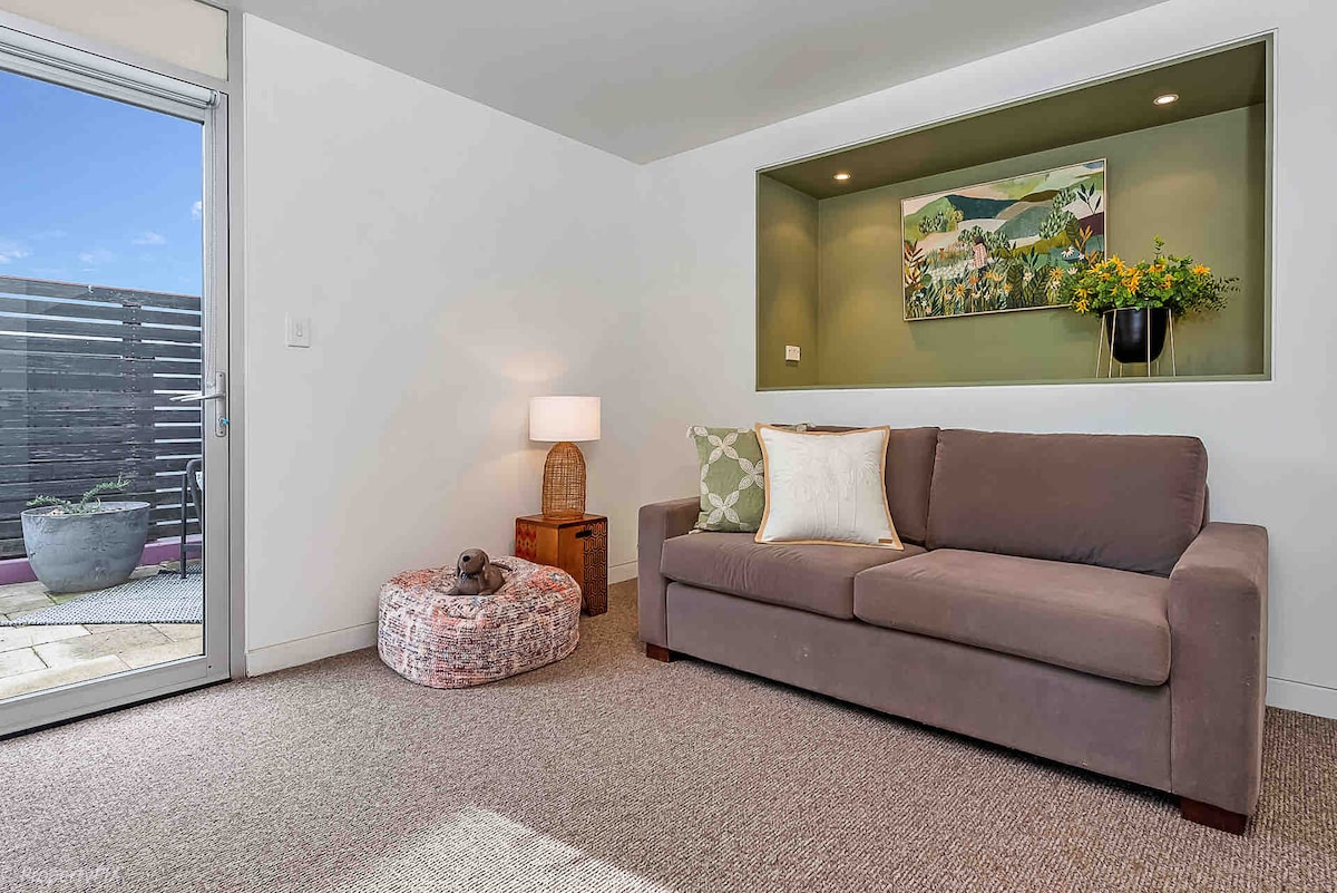 Architecturally designed to capture all day sun, this modern townhouse boasts stunning vistas towards sunrise over the River Derwent. This prime location is only a stone’s throw from South Hobart’s trendy cafés, and is within walking distance of the CBD. This stylish open planned townhouse provides all the creature comforts plus a private courtyard, undercover carport, and double shower-heads. Downstairs, a queen-sized bed with all the trimmings will best suit a couples getaway.