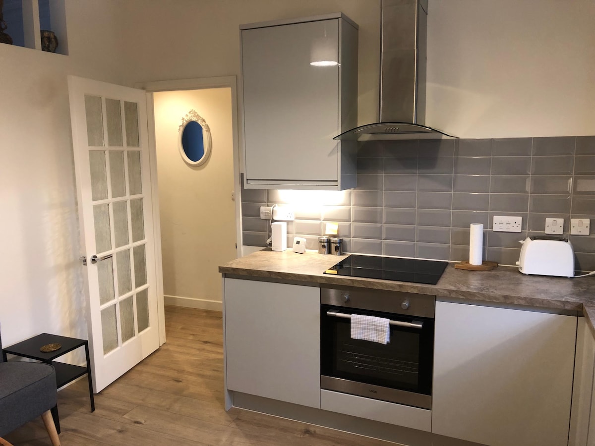 Eitt svefnherbergi með king-size rúmi; stofa. Fullbúið nútímalegt eldhús með helluborði, örbylgjuofni/grilli, ísskáp/frysti, uppþvottavél og Nespresso-kaffivél; nútímalegt baðherbergi með sturtu. Í stofunni er sjónvarp og borðstofuborð/stólar. Ókeypis WiFi Öll rúmföt og handklæði eru til staðar. Gæða egypskt bómullarlín. Snyrtivörur án endurgjalds. Nespresso-kaffivélar án endurgjalds. Hárþurrka. Þvottavél Straujárn og strauborð. Þurrkgrind fyrir föt. Innritun kl. 16:00 / útritun kl. 10:00