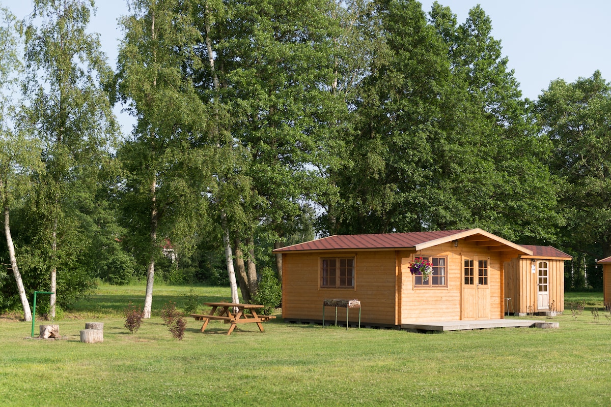Tvö eins herbergis timburhús bjóða upp á frábært tækifæri til að njóta friðsældar og fegurðar með allt að 7 manna hópi. Húsin eru með nauðsynlegar aðstæður fyrir þægilega dvöl - rúm, rúmföt og handklæði. Hvert hús er með sína litlu verönd. Það er eldhús með nauðsynlegum tækjum og baðherbergi.