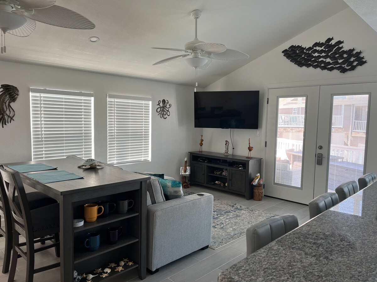 Relax with the whole family at this peaceful place to stay. Waterfront cottage home with access to SPI through the laguna Madre intercoastal channel. Two bedrooms, two- and one-half bathrooms located in the amenity rich resort of Long Island Village, minutes from the beaches of South Padre Island. You can enjoy views of SpaceX launch facilities, fishing off your private dock, watch the summer fireworks on South Padre Island. *Boat lift is not available for guests