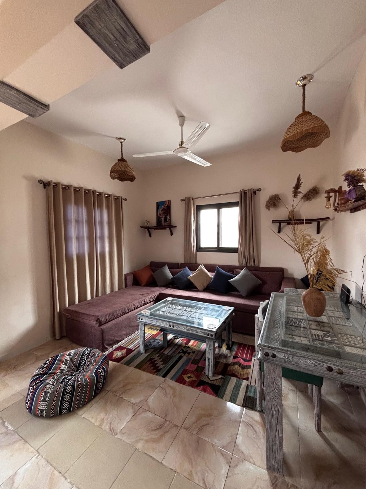 Nomad's Nook er staðsett í hjarta Asalah og er fullkomlega staðsett í 2 mínútna fjarlægð frá bæði ströndinni og markaðstorginu. Þetta rúmgóða stúdíó blandar saman hefðbundnu egypsku andrúmslofti og hreinum nútímalegum stíl til að skapa notalega eign sem er fullkomin fyrir einn eða tvo gesti. Nomad's Nook er fullkominn friðsæll afdrep til að kanna dásemdir Dahab með stóru útisvæði og einkainngangi frá götunni.
