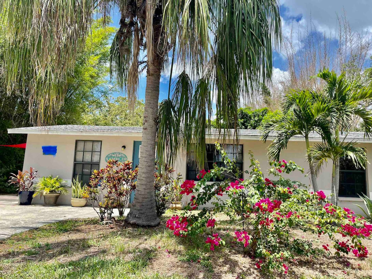 Gistu í kyrrlátri, falinni gersemi fjarri ys og þys iðandi borgarlífsins. Stutt 6 mínútna (2 mílna) akstur til Manasota Key Beach og notið þess að vera ein af vinsælustu ströndum til að finna hákarlatennur! Þetta hús hefur verið endurnýjað að fullu og nýlega innréttað. Í fullbúna eldhúsinu eru þrír stórir gluggar sem bjóða upp á afslappaðan og skemmtilegan matartíma með útsýni yfir laufblöðin að utan. Heimilið er sett upp með einfaldleika fyrir skemmtilega og afslappandi dvöl.