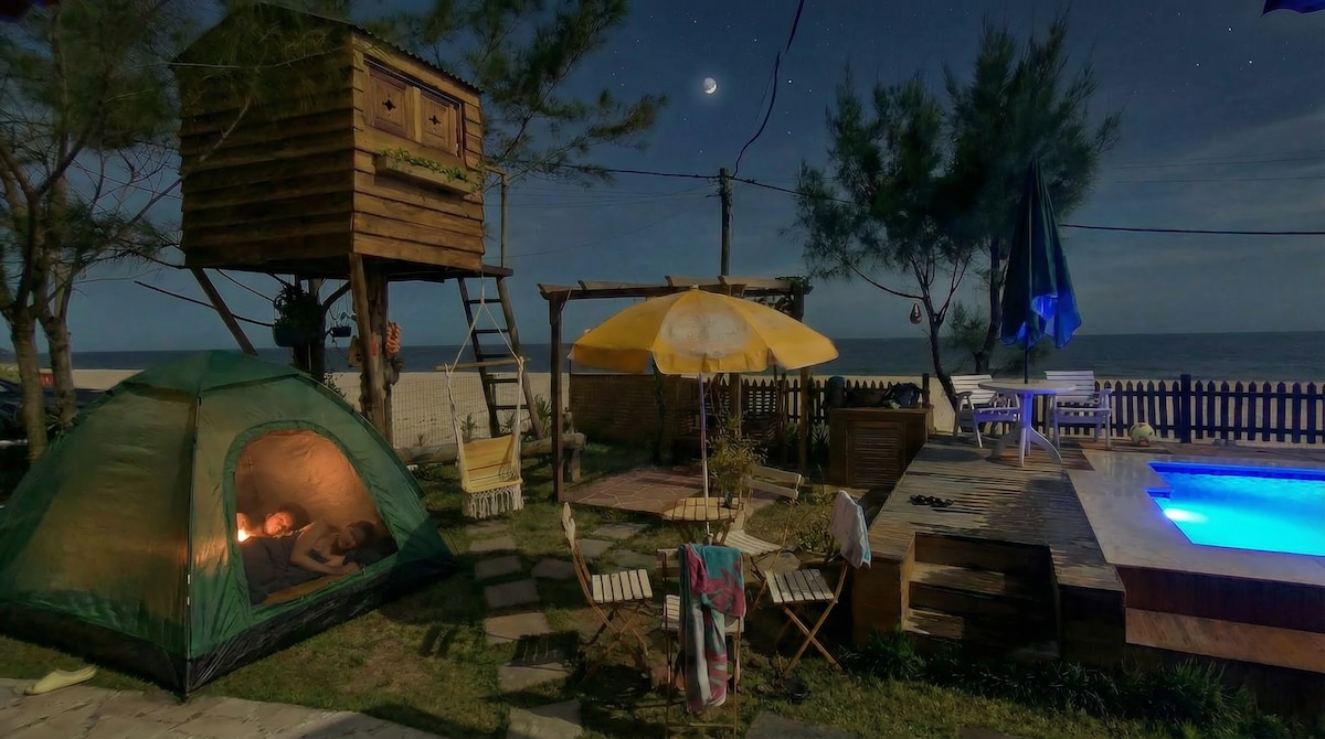 Beira da praia, Piscina, Churrasqueira e Camping