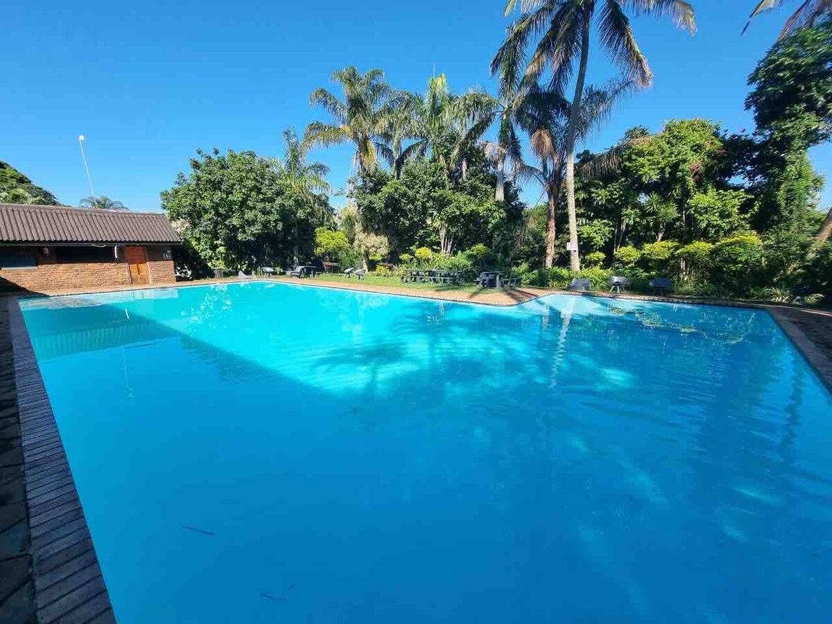 Nútímaleg, rúmgóð, þægileg og frístandandi 3 herbergja/3 baðherbergja skáli okkar er staðsett 10 mínútum frá suðurhluta Kruger þar sem dýrin eru þétt saman og er tilvalinn staður fyrir Kruger safarið þitt! Hlustaðu á flóðhestina á meðan þú nýtur sólsetursins frá stóru pallinum okkar, notaðu útigrillið og njóttu fjölbreyttra aðstöðu dvalarstaðarins eftir dag af ótrúlegum sjónum í Kruger Park. Til að komast yfir rafmagnsskerðingu erum við með gaseldavél ásamt rafhlöðubakúthólfi fyrir ljós, viftur, ísskáp, sjónvarp/afkóðara, beini og innstungur.