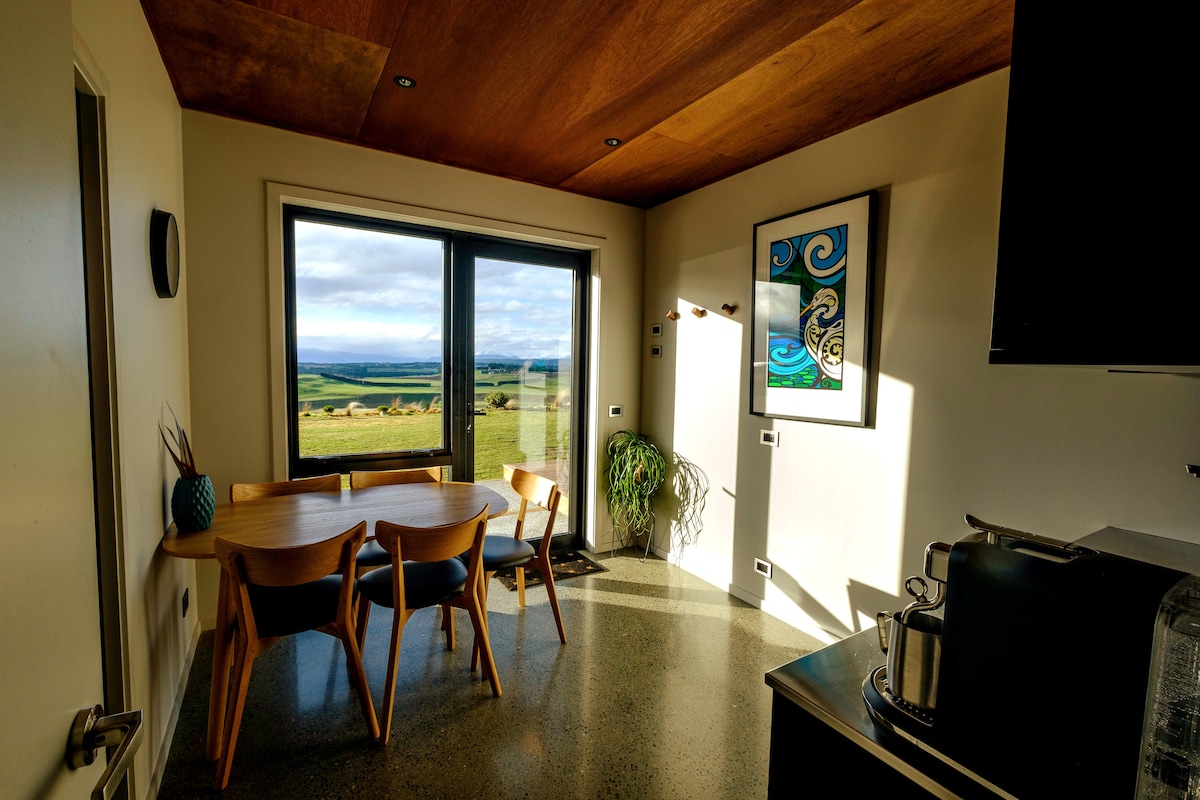 A warm and sunny luxury retreat with stunning, unobstructed panoramic views overlooking the majestic Fiordland mountains, Lake Te Anau and Te Anau township (6km away). Furnished with modern amenities including a private hot tub and central heating, this stylish new property was built with sustainability at the forefront of its design. Finished with quality linen & unlimited WIFI, this is the perfect base from which to explore Fiordland and its many activities including Milford / Doubtful Sound.