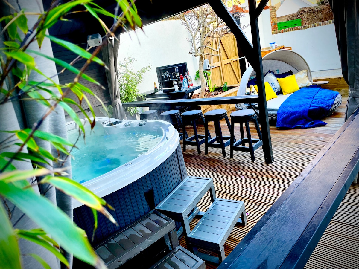 Þetta stúdíó býður upp á lúxus með heitum potti /gufubaði innandyra og eimbaði til einkanota Þessi svíta er fjögurra hæða herbergi og er hönnuð til að bjóða upp á öll þægindi heimilisins sem þú gætir búist við á meðan þú heimsækir Southsea og Portsmouth vegna vinnu eða skemmtunar. Þetta stúdíó er hannað með rómantísku ívafi fyrir þá sem vilja fágað umhverfi. Stúdíóið er með eldhúsi og baðherbergi. Það er bjart og ferskt og með stórum flóaglugga sem horfir út í afskekktan garð.