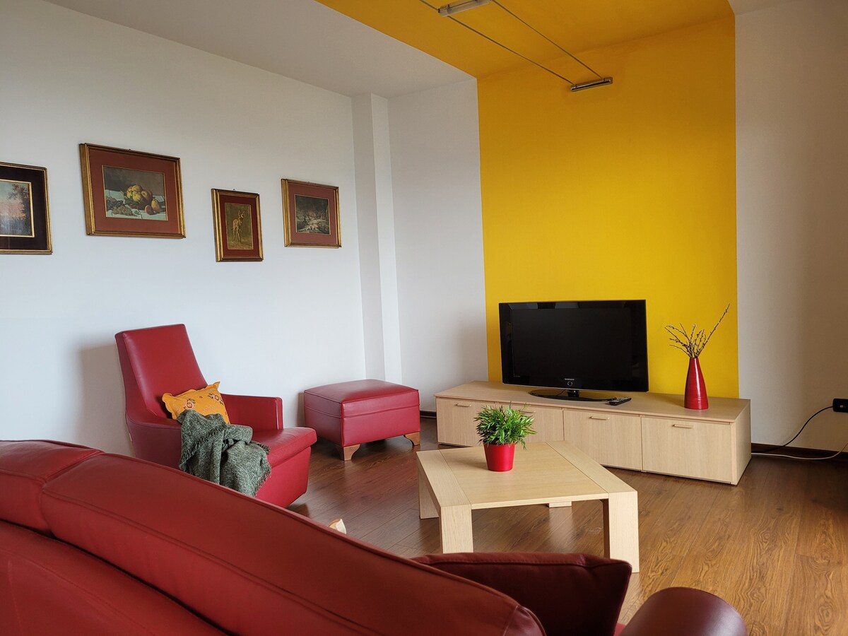Í heillandi hjarta hins sögulega miðbæjar Alzano Lombardo er björt og glæsileg íbúð, glæsileikavin í aðeins 10 km fjarlægð frá Orio-flugvelli (BGY) og í aðeins 7 km fjarlægð frá líflegu borginni Bergamo, sem er aðgengileg með bíl eða með sporvagni TEB Valley, með stoppistöð í nokkurra mínútna fjarlægð frá íbúðinni. Hann er hannaður til að bjóða upp á hámarksþægindi eftir skoðunardag eða sem einkarými fyrir viðskiptaferðamenn. Hann er tilvalinn fyrir þá sem vilja ógleymanlega dvöl.