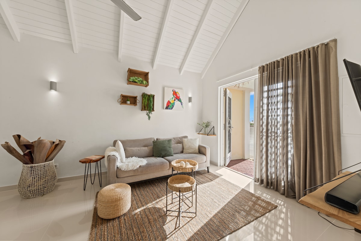 Nútímalegt og íburðarmikið einnar svefnherbergis bústaðurinn okkar er staðsettur í aðeins 5 mínútna akstursfjarlægð frá Jan Thiel-strönd og býður upp á allt sem þarf til að slaka á. Bústaðurinn er hannaður í heillandi stíl sem sækir innblástur til Ibiza og býður upp á rúmgott svefnherbergi, íburðarmikið en-suite baðherbergi og fullbúið eldhús. Slakaðu á í fallegum veröndargarði með einkasundlaug. Friðsælli staðsetningin, ásamt öllum nútímalegum þægindum, gerir þetta að fullkomnum stað til að njóta þess besta sem Curaçao hefur að bjóða.