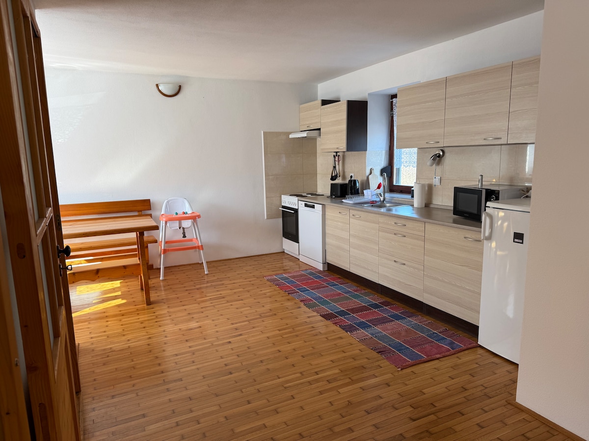 Íbúðin er nýuppgerð með nútímalegu eldhúsi og sérinngangi. Fallegasta útsýnið yfir þorpið er frá veröndinni okkar. Það er friðsælt hérna, en þér verður ekki leiðindi. Við erum heimamenn, þekkjum þorpið og umhverfið eins og fáir aðrir. Við ráðleggjum gjarnan. Þú getur skoðað gömul námuminnismerki, náttúru. Við bjóðum upp á bílastæði, nudd, reiðhjól, sleða. Við erum með leikvanga hér. Við ræktum hrútar, fisk og ketti. Jafnvel þeir minnstu munu njóta sín. Það er eldstæði, garðskáli, engi. Á veturna byrjar og endar skíðið beint við húsið.