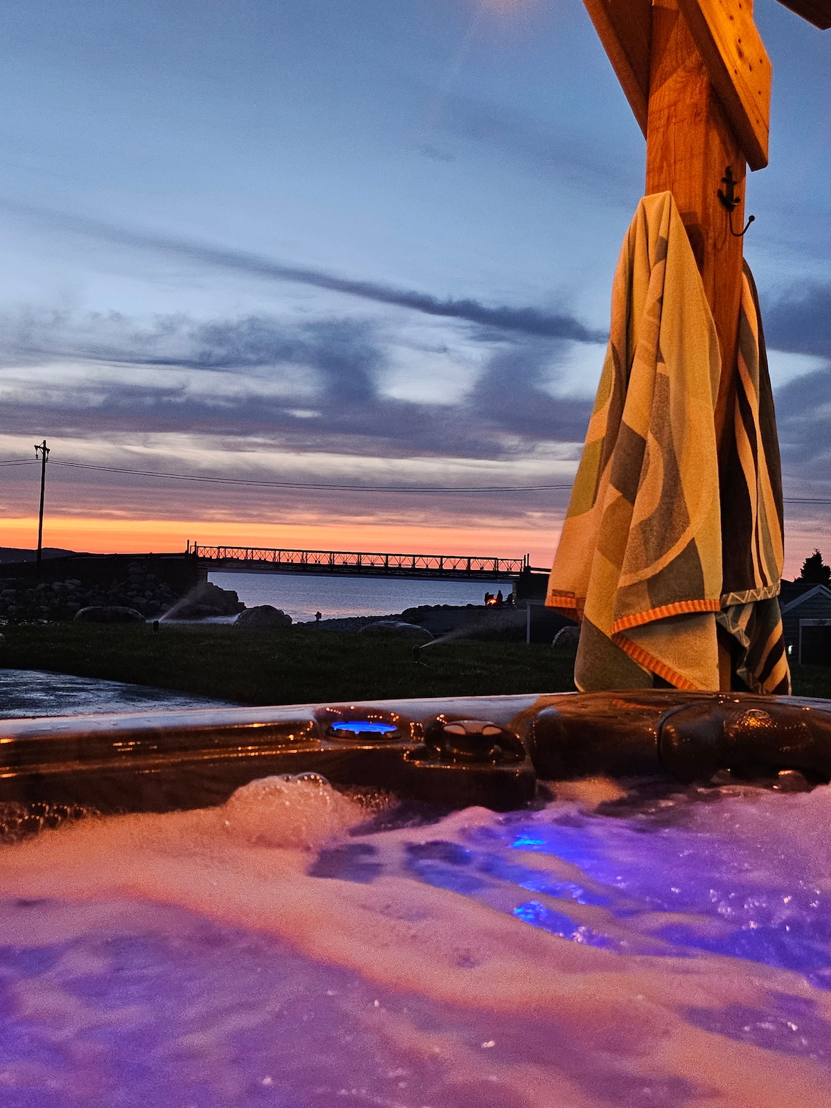 It's All About The View! Whales, Tuna, Dolphins, Eagles, Seals and many more have been see from the deck here at Sandy Cove Chalet's. Perched 75' above the ocean, you'll see all the action on the Bay! The Blue at Sandy Cove Chalet's is a cozy mini chalet that everyone falls in love with immediately! With a loft bedroom you can see the sparkling light of Clarkes Beach right from the bed. Come for the view, come back because of the hospitality! Tax & Cleaning Incl. Multi day discounts. NL Tourism