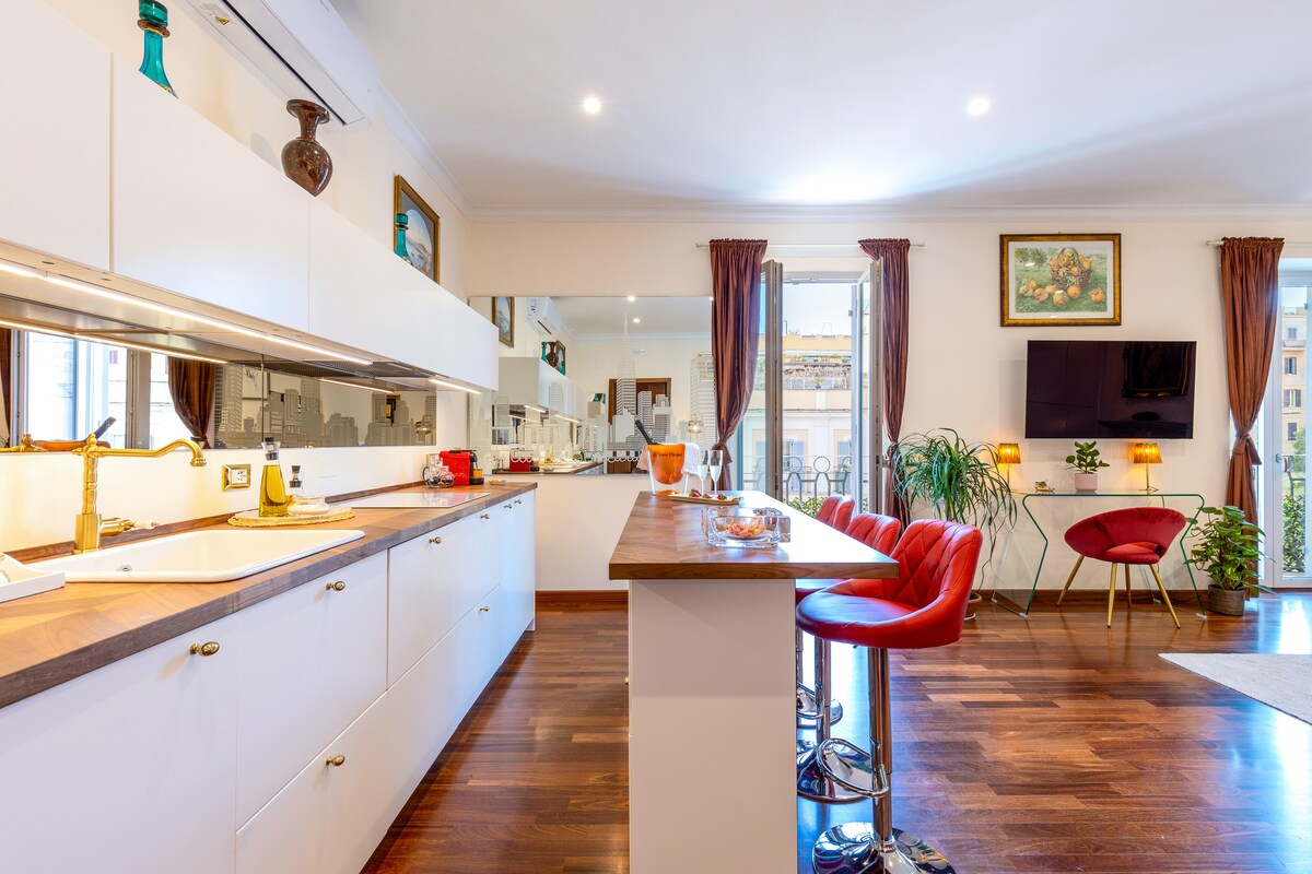 Gimsteinn í miðbæ Rómar, steinsnar frá Pantheon, Piazza di Spagna, Via Condotti og Castel Sant'Angelo. Íbúðin, glæsilega uppgerð og hljóðlát, samanstendur af stofu með fullbúnum eldhúskrók og tveimur tvöföldum svefnherbergjum, hvert með en-suite baðherbergi. Í herbergjunum tveimur er loftkæling, 42 tommu sjónvarp, ísskápsbar, philodiffusion kerfi og Hammam-kofi. Auk þess er nuddpottur og rafmagnsarinn í öðru svefnherberginu. National Identification Code:IT058091C29EAXHT8V