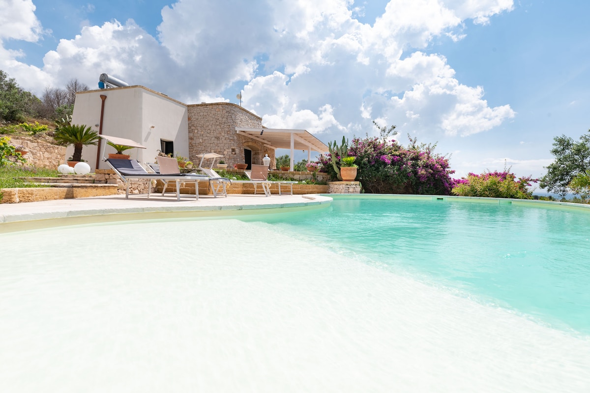 Beautiful local Italian "Trullo" placed in a private property together with two other houses, made of stones with a splendid view of the seaside, placed in the magnificent lush mediterranean bush, cactus and olive trees at just 1,5 km far away from the beach.