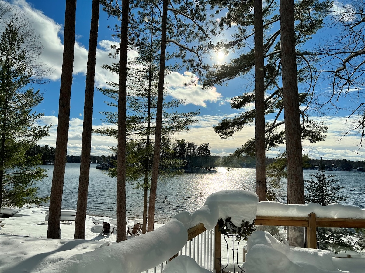 Enjoy this 4 bed/3 bath getaway home on Spider Lake with 60 feet of private beach: an absolutely beautiful setting from sunrise to sunset and the pontoon boat at no extra cost in June, July, Aug, and Sept. Also, kayaks and paddle boats provided free of charge. We are close to the island/sand bar but still quiet at the house. It's the perfect place to stay in any season, only 11.5 miles from downtown the luxuries of downtown Traverse City, and well-protected from claustrophobic downtown traffic.