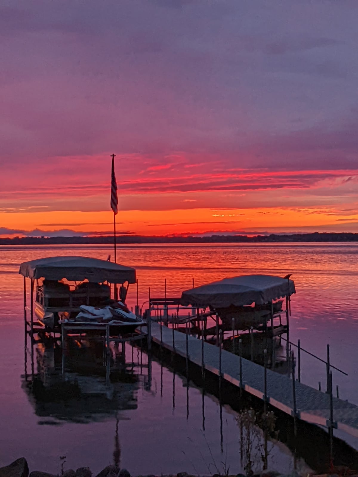 Njóttu þessa fallega, rólega heimilis við vatnið á Okoboji-svæðinu: Sérstakur staður fyrir skemmtun og þægindi allt árið um kring fyrir þig og ástvini þína. Á þessu 4 svefnherbergja, 3 baðherbergja og 3000 fermetra heimili eru 2 fjölskylduherbergi, fullbúið eldhús og borðstofa með sætum fyrir 12. Stórir gluggar sýna magnað sólsetur og yfirgripsmikið útsýni yfir Center Lake; sérstakt leynilegt afdrep í Great Lakes. Efri og neðri verandir eru frábærar til að borða við stöðuvatn. Heimilið er sérstaklega valið fyrir fjölskyldur.