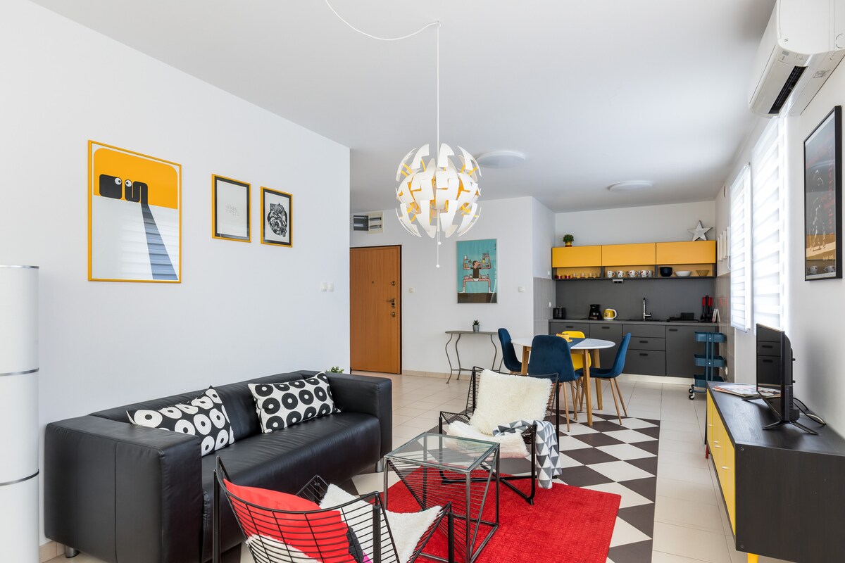 With its separate entrance apartment is located on the ground floore with no stairs. In bedroom is a new double 180/200 sized bed and a sofa to turn into a comfortable bed for 2. Can accomodate max 4 people. New kitchen with dining table and all essentials, free parking and wi-fi,air-con,washing machine etc makes this stylish apartment perfect place for youre holidays. In city centre, just 2-5min from caffe bars,supermarket,old town,Diocletians palace,park,promenade... Quite area nice to sleep.