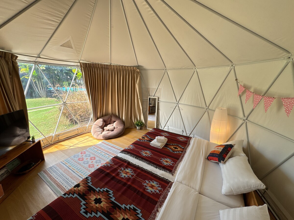 The unique of nature - **2 queen-size bed + an extra single bed (on request). Can stay up to 5 people. - Yurt Tent for family - Big window from ceiling, Fall asleep under the stars and wake up to sunlight filtering through the trees. - Modern Comforts: Air conditioning, ensuite bathrooms, and hot showers. - Complimentary Breakfast: Served with pool views. - Free Wi-Fi, parking, towels/toiletries, and 24/7 support. Ideal for: Adventurous , Families, or couples seeking a unique getaway.