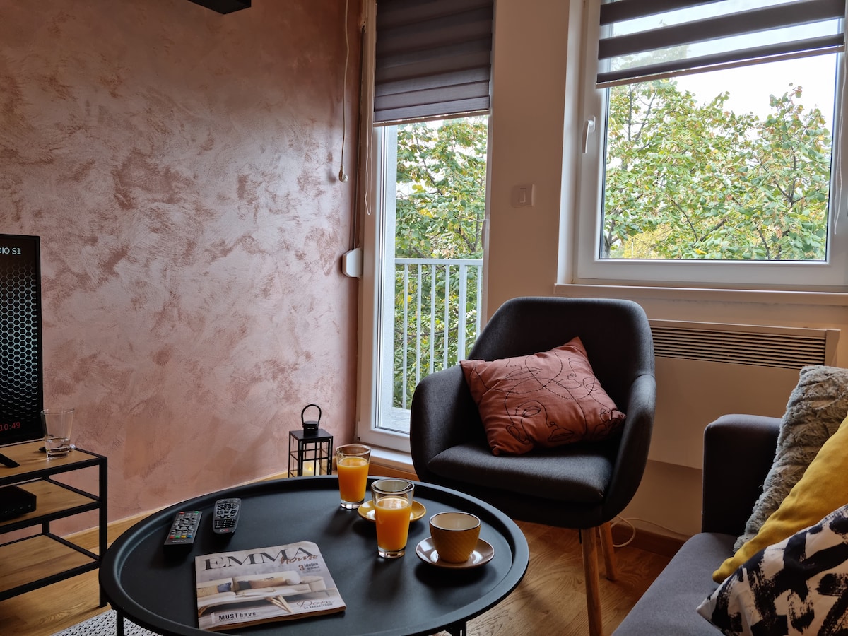 Slakaðu á í fallegri og hagnýtri íbúð. Kyrrð og næði, nálægt miðborginni. Umhverfið í kring er líflegt og fullt af þægindum sem þarf fyrir áhugaverðan dag. Veröndin í íbúðinni er innréttuð eins og kaffihús . Lítið bókasafn og mikið af retró smáatriðum gerir þessa íbúð einstaka. Hverfið heitir Grbavica og gildir fyrir einn af betri hlutum Novi Sad. Snjallsjónvörp geta komið að gagni ef þú vinnur eða slakar á. Miðborgin er í um 15 mínútna göngufjarlægð. Myndir tala aðeins hluta af því.