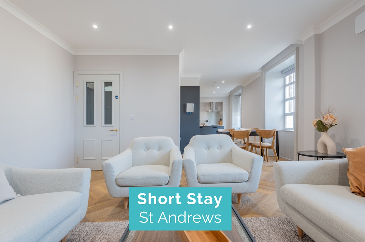 Glæsileg íbúð á annarri hæð með svölum í hjarta hins sögulega St Andrews, Fife, Skotlandi. Með einkabílastæði og lyftuaðgengi er þetta heimili tilvalið fyrir golfara, vatnaíþróttir, landasnekkjur, viðskiptaferðir, göngu- eða hjólreiðaferðir. 7 heimsklassa golfvellir við dyraþrepið sem hægt er að leika sér allt árið í „heimili golfsins“. Njóttu langra sumardaga í Skotlandi eða komdu í notalegt vetrarfrí og njóttu gönguferða við ströndina eða golfleiki. LICENCE320231352 GILDIR TIL 4/6/27