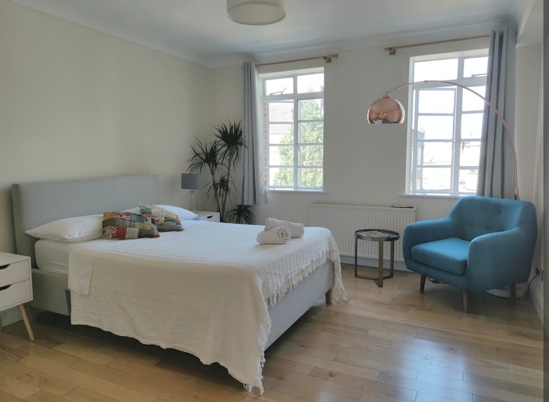 Rúmgóð íbúð með 3 rúmum og 2 fullbúnum baðherbergjum í hjarta Litlu-Feneyja með svölum og aðgangi að 4,5 hektara öruggum samfélagsgarði með leikvelli fyrir börn. 50 metra frá Warwick Avenue neðanjarðarlestarstöðinni ( 12 mín að Oxford Circus). 10 mínútna ganga að Paddington-stöðinni. Íbúðin samanstendur af 1 svefnherbergi með king-rúmi, öðru svefnherbergi með king-rúmi og þriðja svefnherbergi með tvíbreiðu rúmi. Hratt þráðlaust net og snjallsjónvarp. Open Plan stofuna - fullbúið. 2 baðherbergi