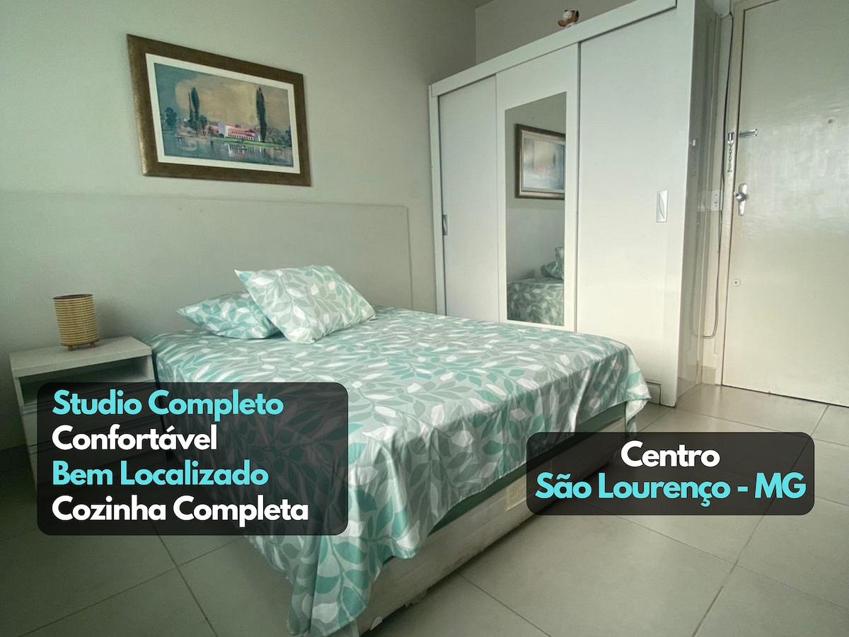 Kitnet í miðbæ São Lourenço, í nokkurra mínútna fjarlægð frá Parque das Águas, göngubryggju, matvöruverslunum, apótekum og veitingastöðum. Það er staðsett í Jina-byggingunni og er með lyftu, einkaþjónustu, hvíldarsvæði og ókeypis þráðlaust net. Gisting með rúmfötum, koddum, teppum, eldhúsbúnaði, diskum, glösum, rafmagnseldavél, örbylgjuofni, sjónvarpi með interneti, minibar, sérbaðherbergi og þægilegu hjónarúmi.