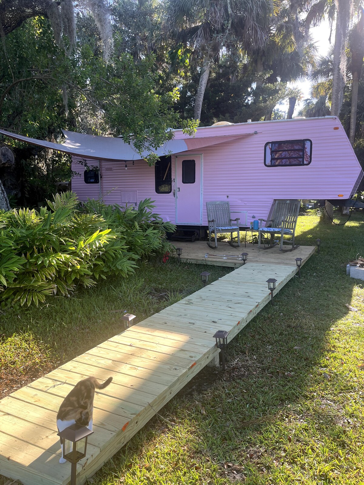Verið velkomin í heillandi bleika húsbílinn okkar sem er staðsettur í hjarta hitabeltisfegurðar Flórída. Ef þú ert að leita að einstöku og ógleymanlegu fríi hefur þú fundið það! 10 mínútur á ströndina og í verslanir. Þessi húsbíll með gamaldags innblæstri er upplifun út af fyrir sig. Bleiki húsbíllinn okkar er á friðsælum stað. Komdu þér fyrir á kyrrlátum bóndabæ innan um líflegan hitabeltisgróður og þér mun líða eins og þú sért fluttur út í heim kyrrðarinnar. Bókaðu þér gistingu í dag og taktu þátt í bleiku húsbílaupplifuninni!