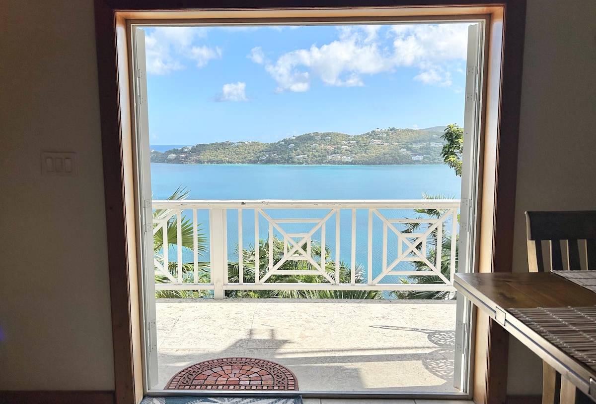 *EKKERT RÆSTINGAGJALD* Heimili okkar er staðsett við svala norðurhlið St. Thomas og þaðan er útsýni yfir stóran flatan garð og yfirgripsmikið útsýni yfir Magen's Bay, Atlantshafið og 20 litlar eyjur. Eignin þín er með sérinngang 5 þrepum frá sérstaka bílastæðinu þínu. Athugaðu: 1. Reykingar eru bannaðar á veröndinni eða í íbúðinni. 2. Ólíkt mörgum Airbnb eignum innheimtum við EKKI ræstingagjald og því biðjum við gesti okkar um að sópa og þvo upp áður en þeir fara. 3. Ekki fleiri en 4 gestir á HVERJUM tíma.