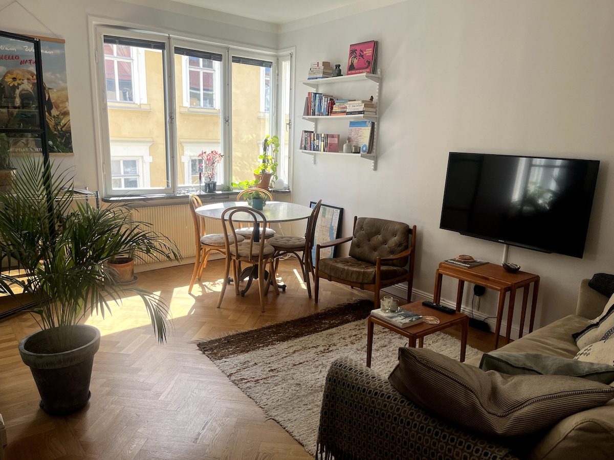 Verið velkomin í stóru og þægilegu íbúðina mína með einu svefnherbergi í hjarta hins líflega hverfis Stokkhólms, SoFo, sem er full af vinsælum verslunum og notalegum kaffihúsum. Opið og rúmgott skipulag íbúðarinnar býður þér að slaka á og slaka á eftir dag í borginni og þú getur búið til eitthvað gómsætt í fullbúnu eldhúsinu þó að þú munir aldrei verða uppiskroppa með fjölda veitingastaða rétt handan við hornið. 15 mín göngufjarlægð frá gamla bænum, 4 mín göngufjarlægð frá neðanjarðarlestarstöðinni og ofurhröðu þráðlausu neti.