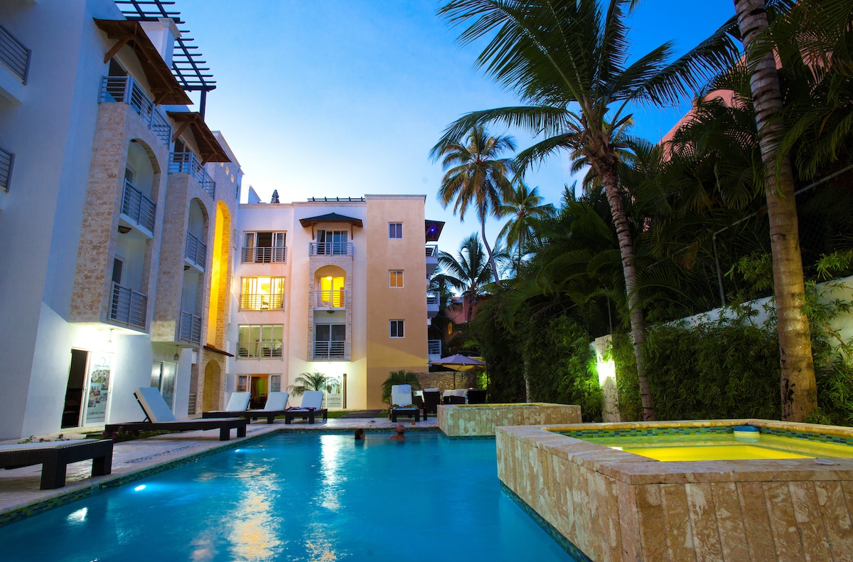 Nútímaleg vin í miðbæ Punta Cana, nokkrum skrefum frá Coco Bongo. Flott íbúð með bjartri stofu, fullbúnu eldhúsi, svefnherbergi með queen-size rúmi, nútímalegu baðherbergi og einkasvölum. Sundlaug, öryggisgæsla allan sólarhringinn og fullkomin staðsetning nálægt veitingastöðum, matvöruverslunum og vinsælum ströndum. Tilvalið fyrir pör, ferðamenn og viðskiptaferðamenn.