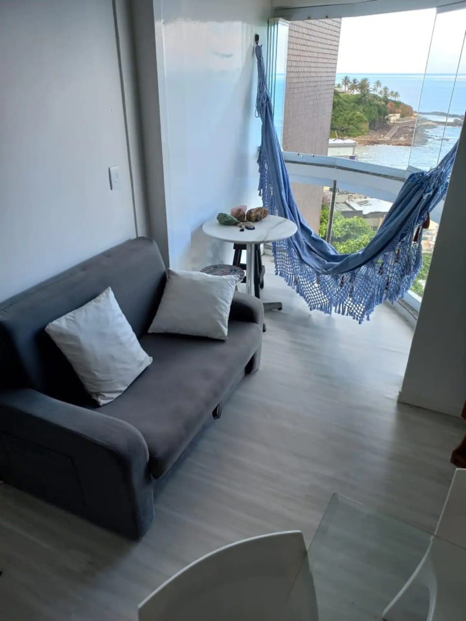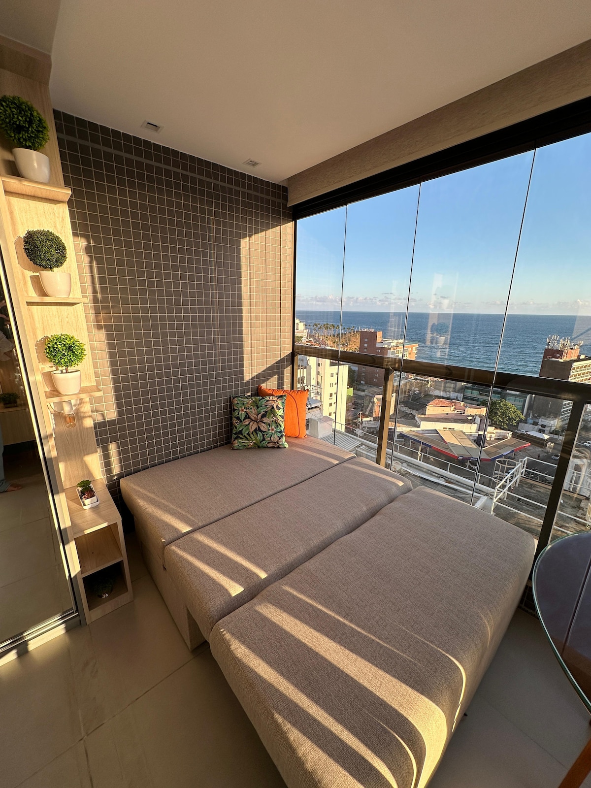 Lovely apartment with stunning ocean views, overlooking Salvador's main landmarks. From the balcony, besides the beautiful view of the All Saints Bay, you can admire the Bahia Marina, the Lacerda Elevator, the Solar do Unhão, and the São Marcelo Fort. The space is elegantly decorated, with environments equipped with everything you need, including a balcony with magnificent views. The bedroom features a comfortable queen-size bed, while the living room has a double sofa bed.