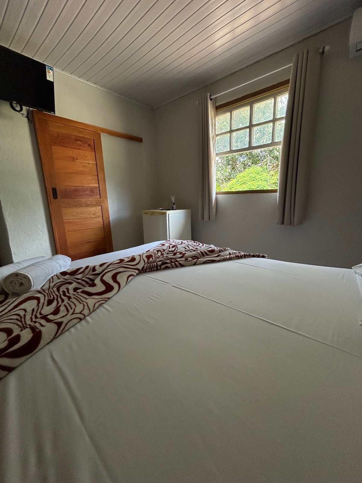 Við dvöldum á Pousada das Marias 🧡🦜 Morgunverður innifalinn. Lítil svítan er með snjallsjónvarpi, ókeypis þráðlausu neti, loftkælingu og minibar. Baðherbergið, þótt það sé lítið, er með sturtu sem býður upp á aðra upplifun í fínstilltu rými. Staður fyrir fólk án vesenis. Rúmföt og baðlín eru innifalin.