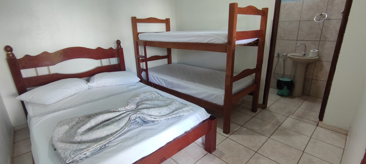 Gistiheimili í dreifbýli 4 km frá borginni Pirenópolis. Í skála 1 er: 1 hjónarúm og pláss fyrir 1 tvöfalda dýnu á gólfinu og 1 baðherbergi. Það er með : gólf- og tankviftu. VINSAMLEGAST KOMDU MEÐ RÚMFÖT OG BAÐFÖT. BIFREIÐAHLJÓÐ ER BANNAÐ HÁVÆRT HLJÓÐ ER BANNAÐ BANNAÐ GÆLUDÝR BANNAÐ AÐ KOMA MEÐ GLERBOLLA OG FLÖSKUR Á LAUGARSVÆÐIÐ. REYKINGAR BANNAÐAR INNI Í SKÁLANUM