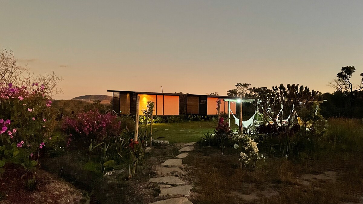 Skálinn okkar er fyllilega sambyggður náttúrunni. Það er með stóra glergrindur og ókeypis útlit fyrir Cerrado og fjöll sem veita stórkostlegt útsýni. Fullbúið eldhús, úrvalsrúmföt og baðsloppar, frábær upphituð sturta, skápur og rúm með 5 stjörnu hóteldýnu. Það eru svalir með þilfari meðfram öllum lengd skálans,með borði og stólum fyrir utan svo að gestir geti íhugað náttúruna og stjörnuhimininn Chapada - að sjálfsögðu fengið sér vín. =)