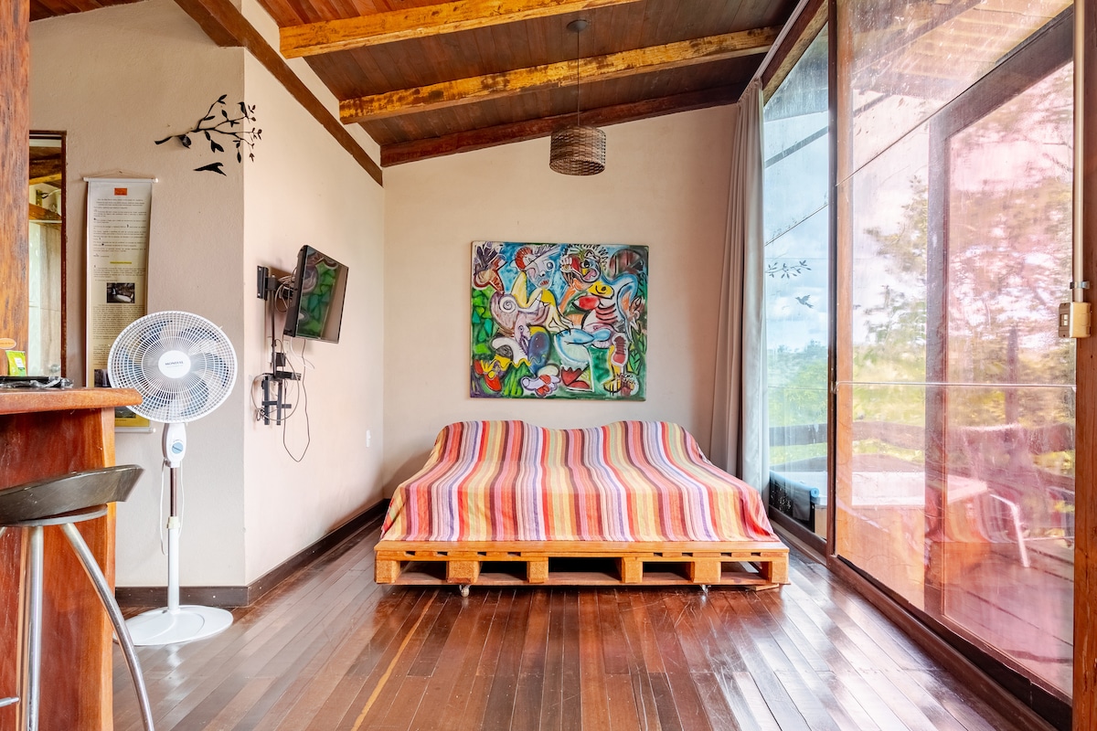 Atrium-kofinn er rómantískt afdrep með kvikmyndrænu útsýni yfir Chapada dos Veadeiros-fjöllin. Dáðstu að Serra da Boa Vista og ógleymanlegu sólsetrinu frá vatnsfallinu eða svölunum. Átria er fullkominn staður til að hægja á og upplifa töfra Chapada, nokkrum mínútum frá þjóðgarðinum og helstu fossunum. Hér hægist á tímanum. Sólarupprásin á milli fjallanna, djúpa þögnin og stjörnubrotin nætur eru boð um að upplifa Chapada á einstakan hátt