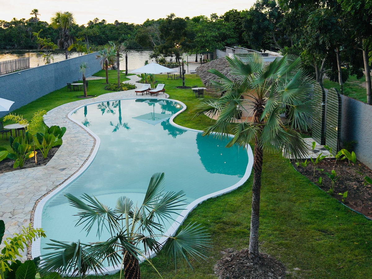 Heillandi staður með sundlaugar og náttúrulega ána