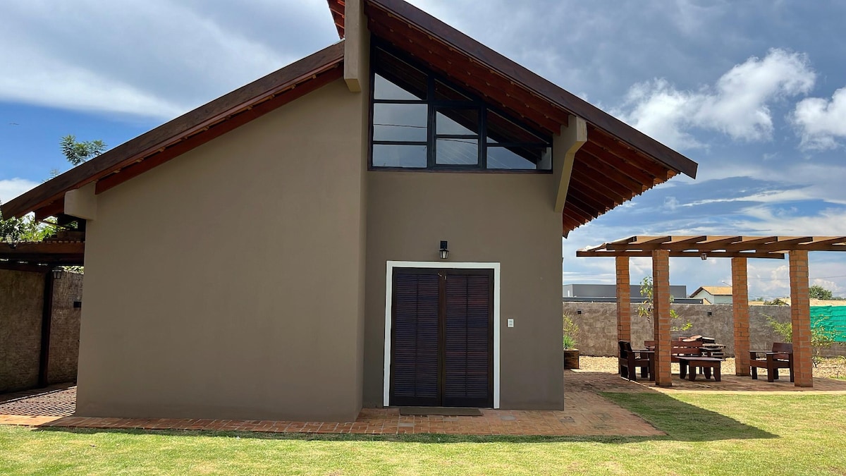 Fábrotið hús með opnu eldhúsi innan um tvo litla cerrado-lundi. Mikil náttúra til hvíldar, algjörlega til einkanota. Campfire Area. Í húsinu er stór svíta með queen-rúmi. Innlifunarbaðkar. Herbergi fest við svítuna með 3 einbreiðum rúmum. Salerni utandyra. Máltíðir til að panta hjá samstarfsaðilum. Tbm Partnership with Tour Guide. Við erum í 8 mínútna akstursfjarlægð frá miðborginni (Festivals Square).