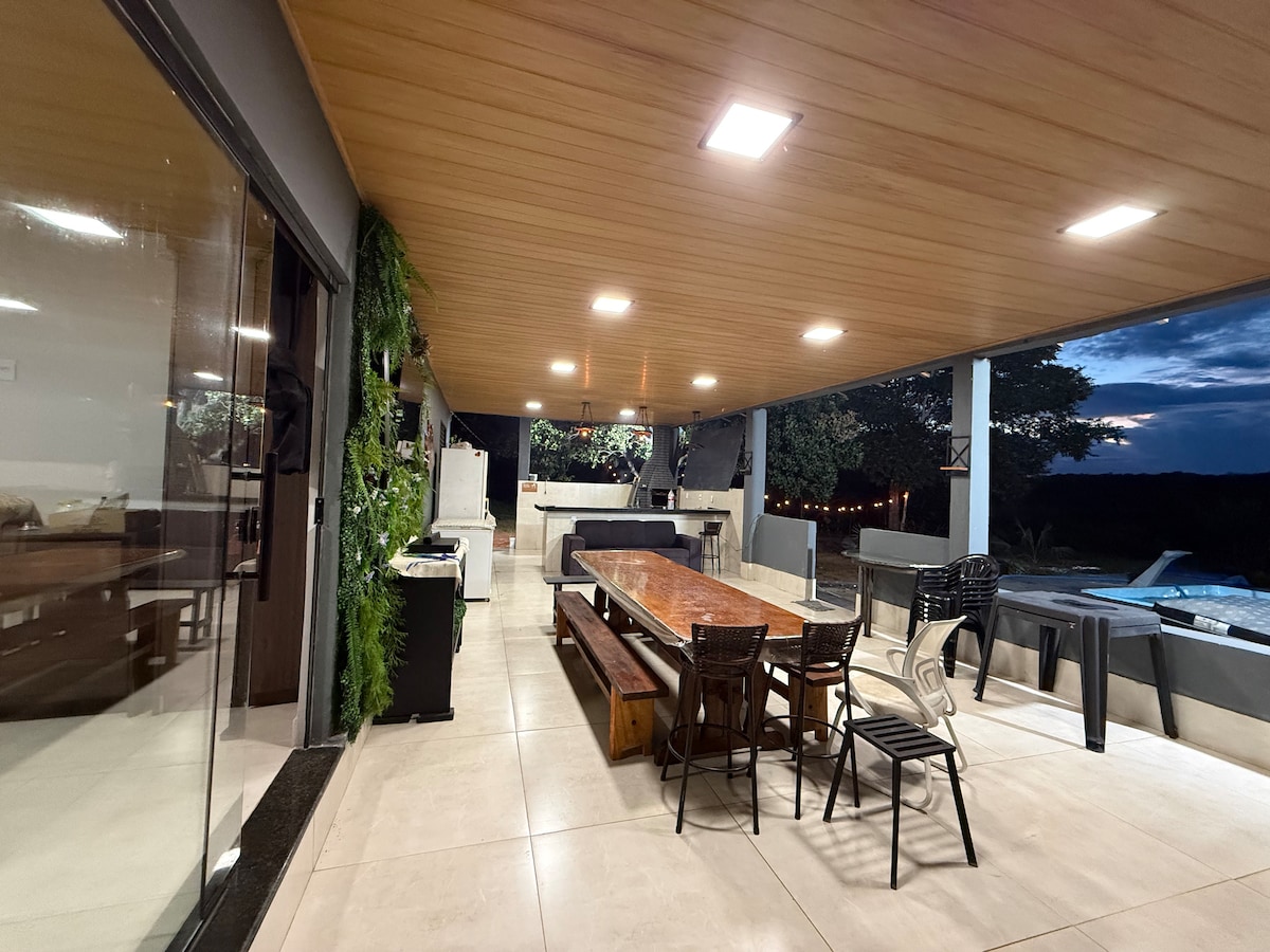 Breiðstræti Chapada dos Guimarães, umkringt gróðri og aðeins 5 km frá þéttbýlinu Cuiabá og 50 km frá borginni Chapada dos Guimarães. Stórt hús með grillsvæði og sundlaug. Kyrrlátur staður og í burtu frá miðborginni, en ekki svo mikið. Hann er í 5 km fjarlægð frá stækkun þéttbýlisins í Cuiaba. Matvöruverslun í 5 km fjarlægð og ofurmarkaðurinn í 6 mílna fjarlægð. allt að 4 gestir, verðið er fast. Þar að ofan skaltu gefa upp upphæðina sem verður reiknuð út. Við LEIGJUM EKKI ÚT FYRIR VEISLUR