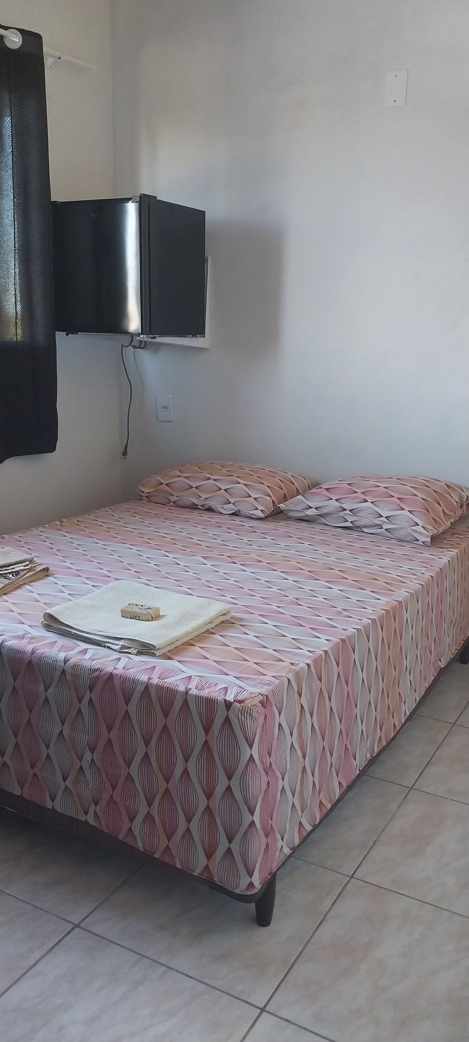 O quarto está equipado com ar condicionado, TV com acesso a Netflix e Prime Vídeo, além de toalhas.