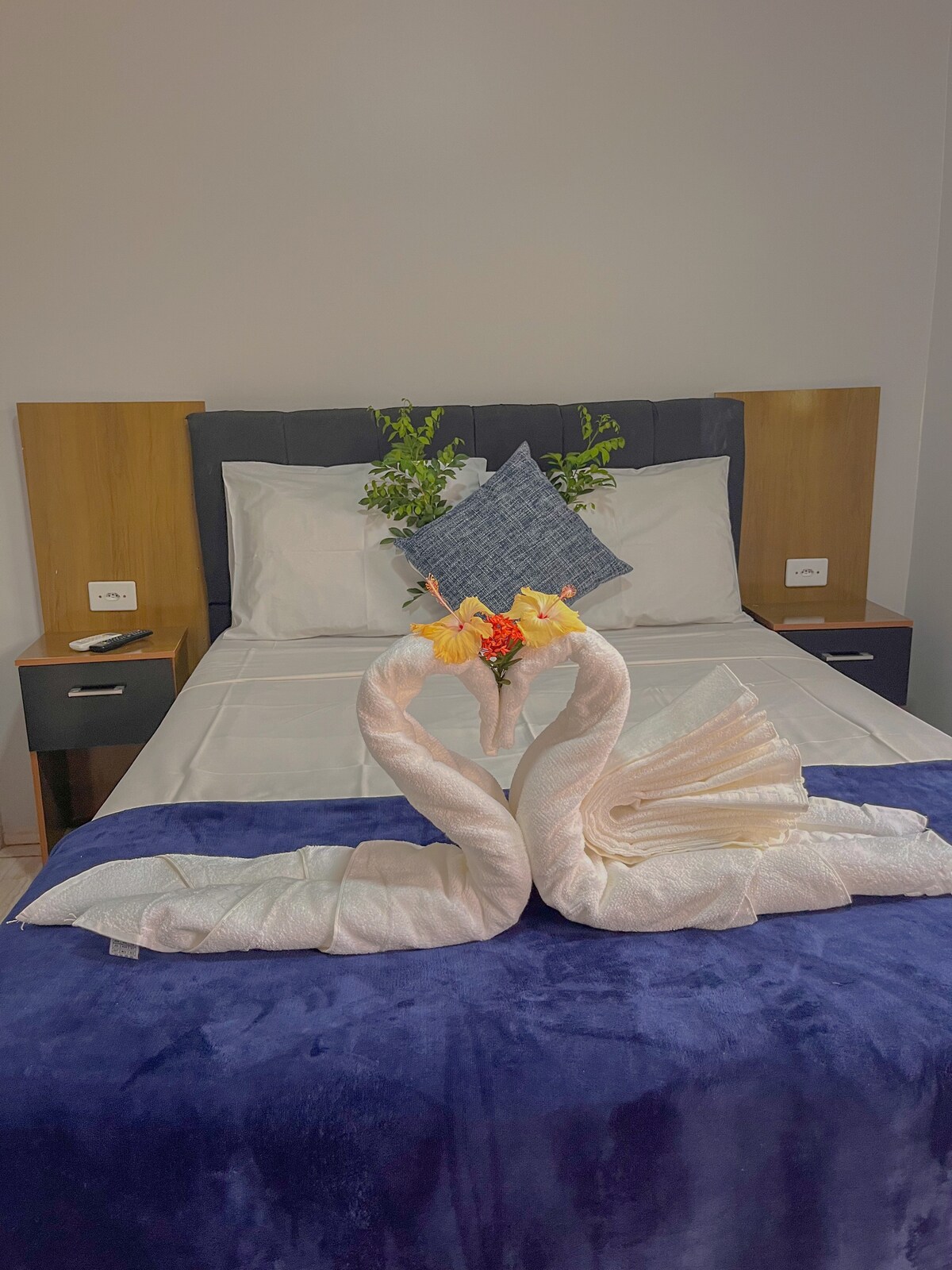 Apartamentos com ar condicionado, televisão, frigobar e wifi Café da manha com mais de 15 itens variados. Estacionamento fechado