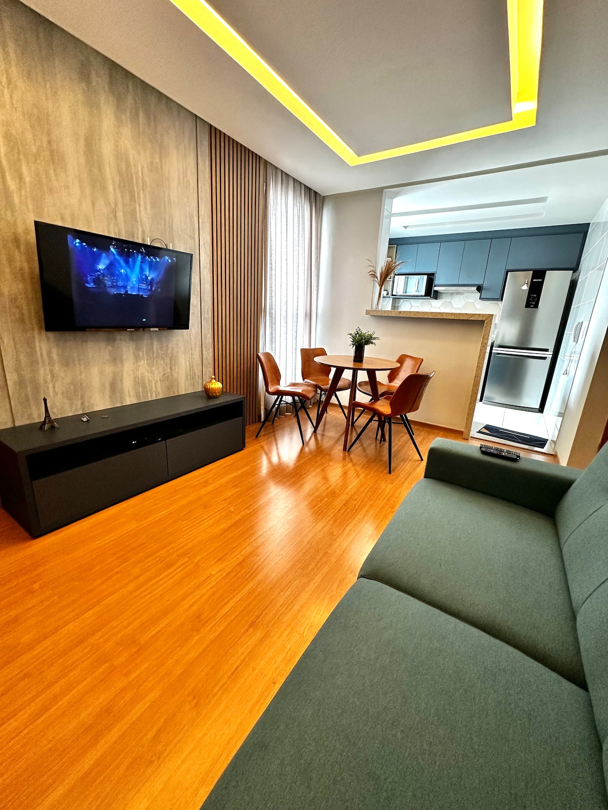 Apt Central 100mts Teatro Ouro Verde. Stórt svefnherbergi með hjónarúmi og svefnsófa,annað svefnherbergi með hjónarúmi með rennihurð, borðstofa og eldhús/tvö svefnherbergi eru með Alexa tæki með raddstýringu. Samsung Smart TV 32’ Nao temos TV a cabo e antena.