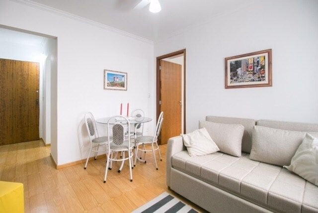 Staðsett á frábæru svæði í Maringá, rólegur staður, nálægt veitingastöðum, börum, matvöruverslunum, verslunarmiðstöðvum og 1 blokk frá UEM (frábært fyrir þá sem koma fyrir viðburði, ráðstefnur og inngangspróf). 600 m frá MERCADÃO (rými með bestu veitingastöðum borgarinnar). - dyravörður á opnunartíma - 10 mín frá strætó stöð og 18 mín frá flugvellinum. - Bílskúr er í byggingunni. ( Ekki er hægt að taka á móti stórum vörubílum og bílum) *Uber er um það bil 3 mín í bið.