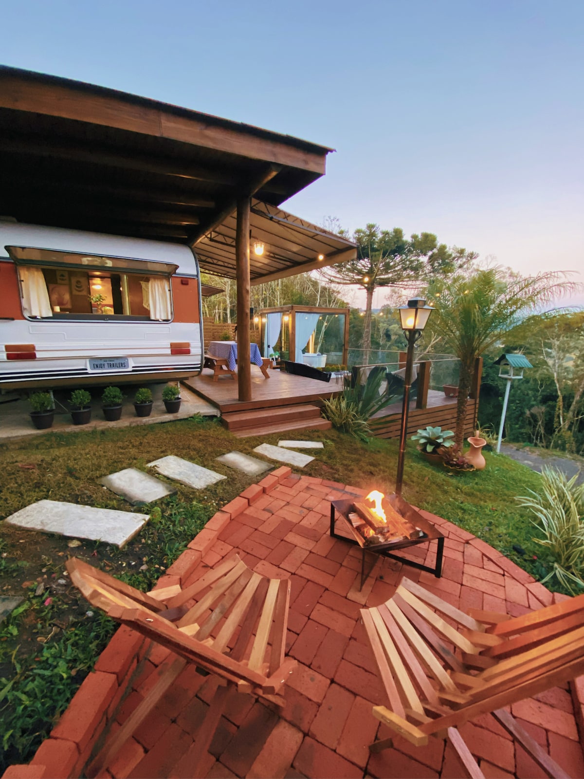 Villa í gamaldags hjólhýsi með einkaverönd í miðri náttúrunni og niðurdýfingarbaðkeri úr glerhúsi. Gestir eru staðsettir við Pousada Hinckel og hafa aðgang að sundlaugum fyrir fullorðna og börnum, fótboltavelli og stóru grænu svæði. Við erum 1 km frá Salto das Águas Water Park og í nokkurra mínútna fjarlægð frá miðbænum þar sem eru frábærir veitingastaðir sem bjóða upp á hjólhýsið.