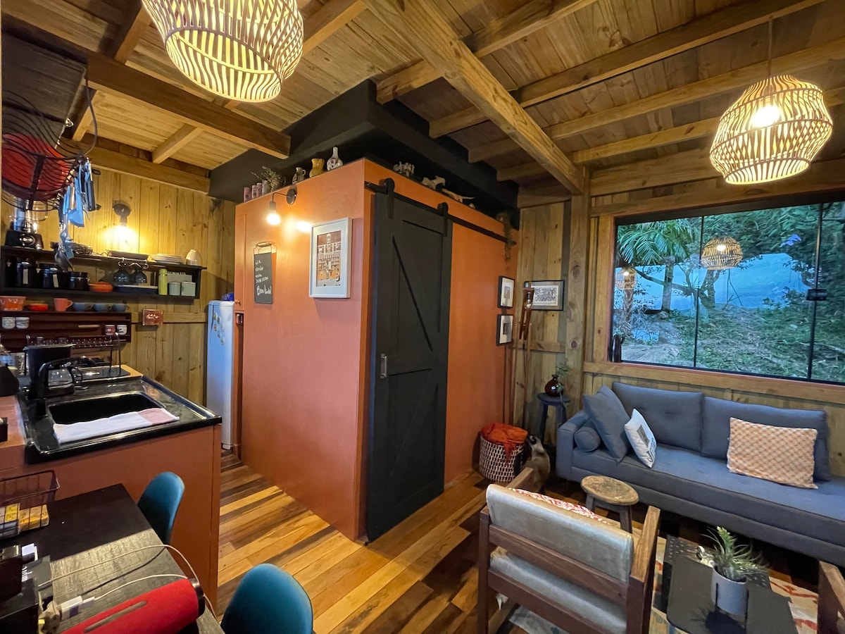 Tiny House com banheira e vista para o mar