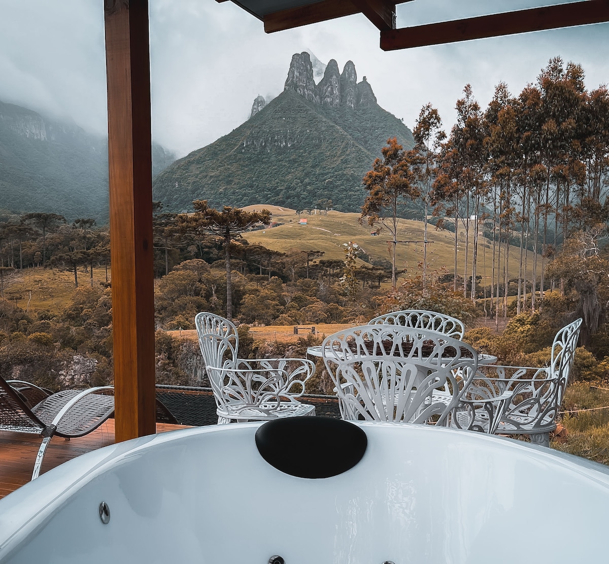 Cabana com hidromassagem e vista para a montanha