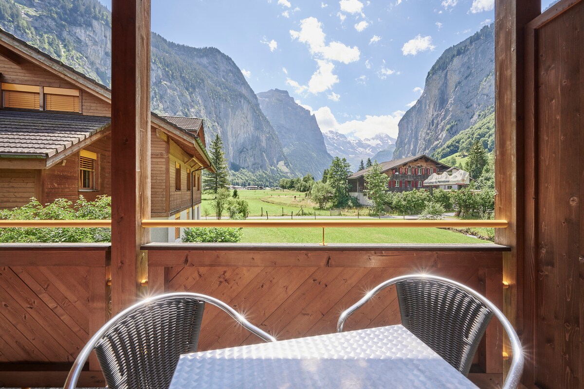 Íbúðin okkar er staðsett í miðju heimsfræga Lauterbrunnen dalnum, rétt við hliðina á hæstu fossum Alpanna. Rúmgóða íbúðin okkar er íbúð á einni hæð með 3 svefnherbergjum, 2 baðherbergjum og plássi fyrir 6 fullorðna. Frá svölunum, sem snúa í suður, getur þú notið stórkostlegs útsýnis til svissneskra fjalla og Lauterbrunnen fossanna. Lauterbrunnen er hluti af heimsminjaskrá Jungfrau UNESCO. Það er umkringt hinum frægu fjöllum sem kallast Jungfrau, Eiger og Schilthorn.