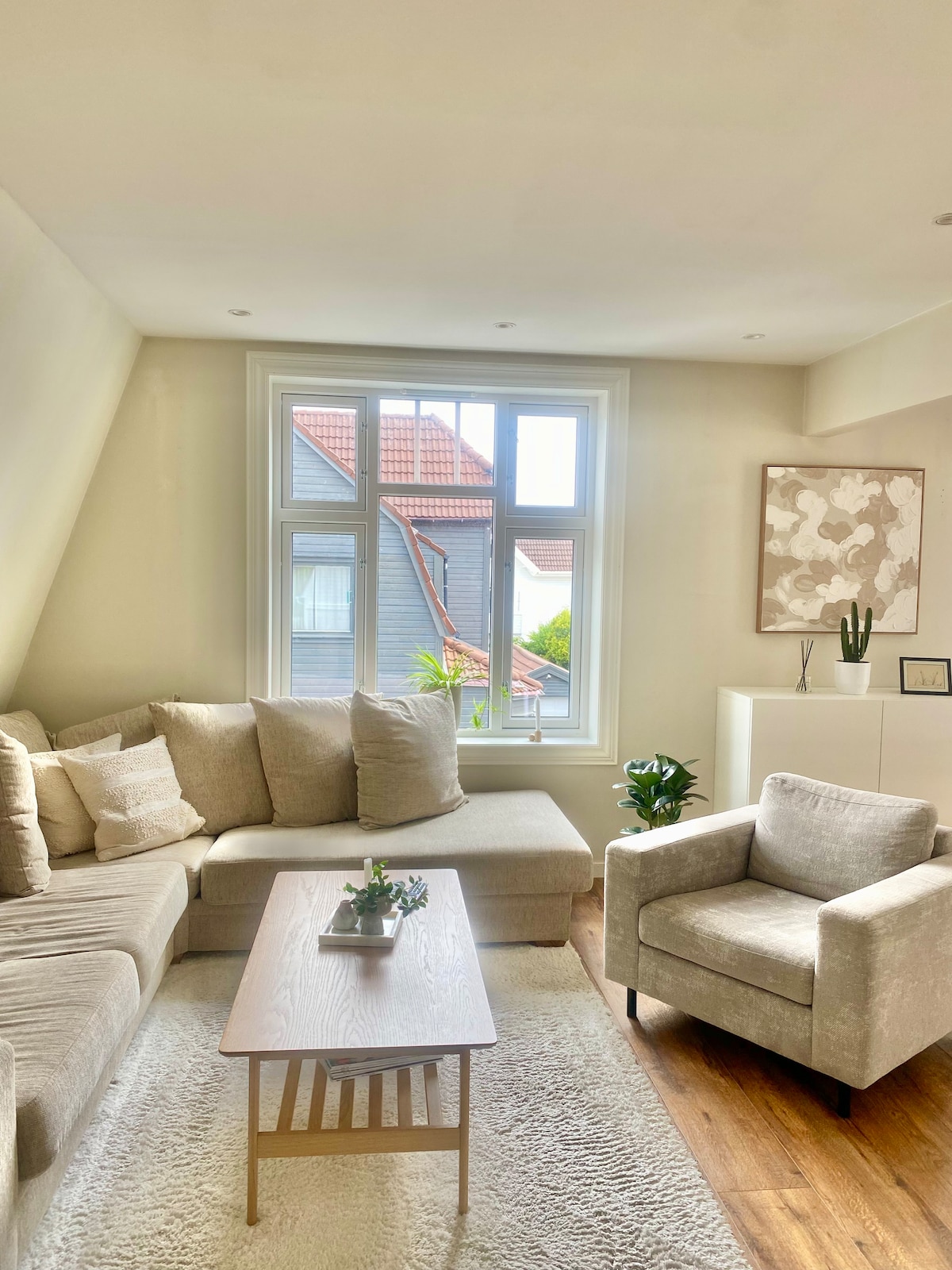 Þétt en róleg íbúð með þakverönd sem snýr í vestur nálægt miðbæ Stavanger og Pedersgata með börum og veitingastöðum. Íbúðin er með fullbúnum innréttingum. Hér getur þú gengið að miðborginni á 5 mínútum. Íbúðin er með fullbúnu eldhúsi, 1 rúm, baðherbergi og svefnsófa í stofunni með herbergi fyrir 2 manns. Íbúðin er með eldavél, ísskáp, frysti, uppþvottavél, örbylgjuofn, kaffivél, þvottavél, rúmföt, handklæði, þurrkara, 50 tommu sjónvarp með chromecast og ókeypis WiFi