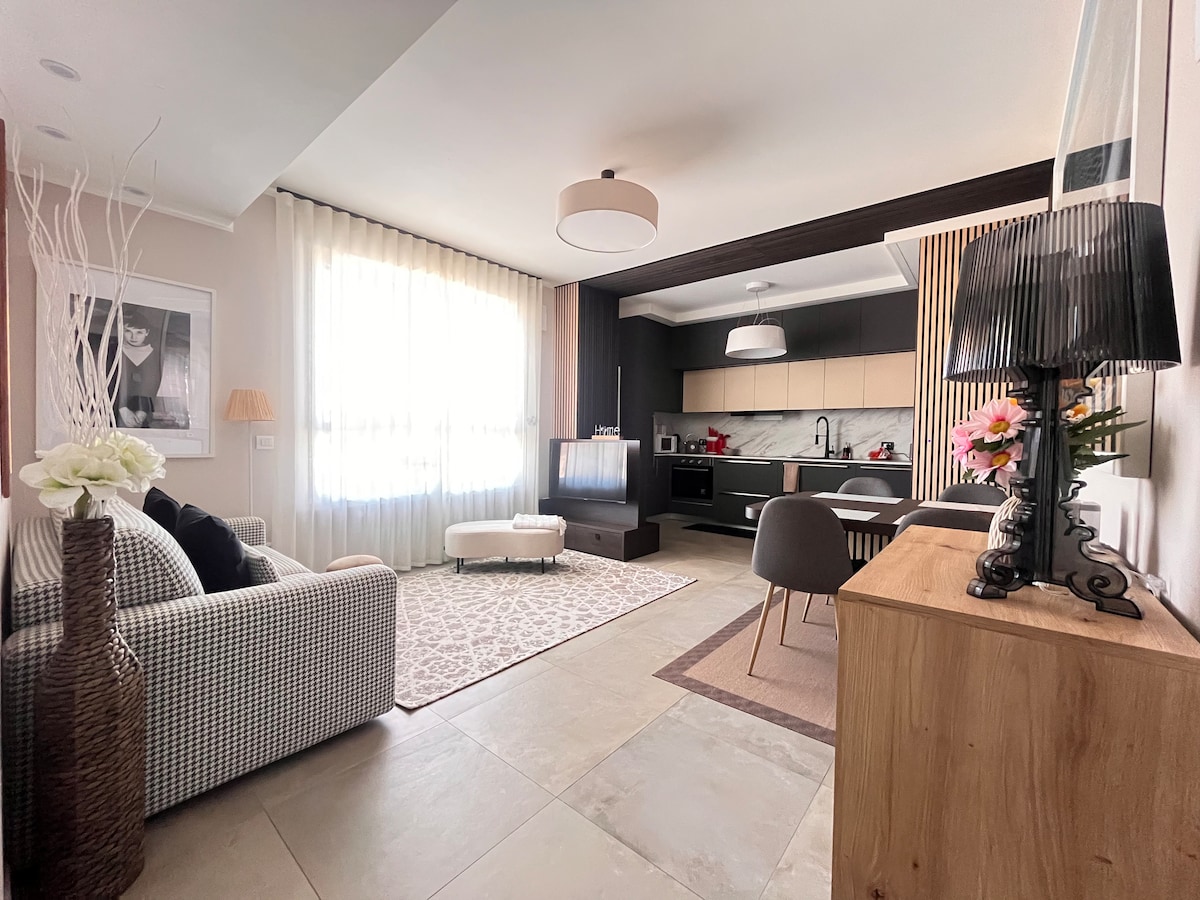 Welcome to The Place to BG, our oasis in the pulsating heart of downtown Bergamo! The apartment has just been renovated and is located on the first floor, with an elevator, in an elegant building on a green and peaceful residential street. The accommodation is just steps away from everything Bergamo has to offer: restaurants, bars, shops, and all the charm of this city are at your fingertips, as the apartment is a 1-minute walk from Bergamo's main street.